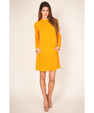 Права рокля с дълги ръкави в цвят горчица от Tantra