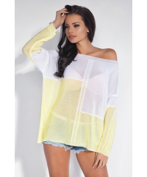 Лек двуцветен пуловер в лимонено жълто и бяло от Fobya
