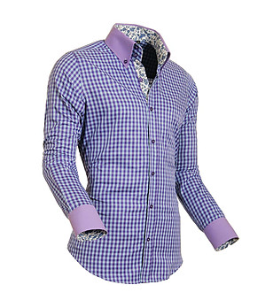 Мъжка риза на каре в лилаво и синьо Styleover