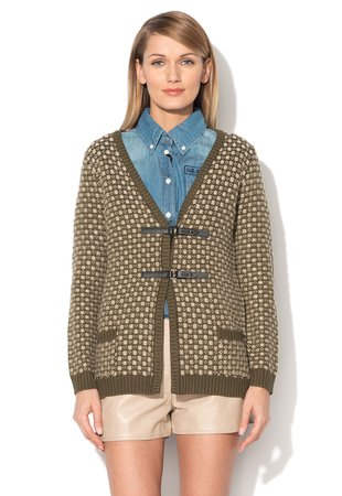 Silvian Heach , Dunway Military Green and Beige Cardigan