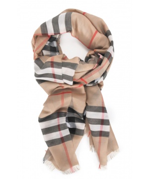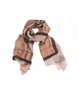 Стилен шал от Burberry в кафява гама с раирани мотиви