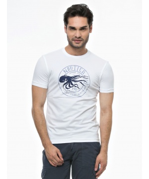 Стилна тениска с контрастно лого в бял цвят от Nautica