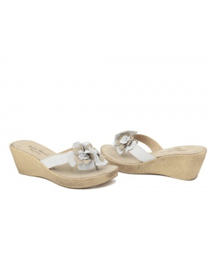 Дамски чехли на платформа от Miss Butterfly в кафяв нюанс с цвете