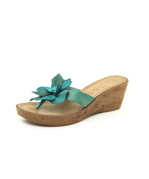 Дамски чехли на платформа от Miss Butterfly в тюркоазен нюанс с цвете