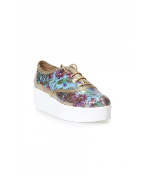 Обувки с връзки в цвят тюркоаз със златист кант от Tibu