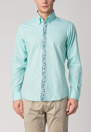 Styleover by Pontto, Slim Fit Pale Green Shirt With Paisley Trims
