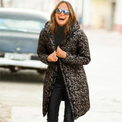 Дълга пухенка с колан и щампа