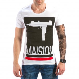 Мъжка бяла тениска с автомат отпред